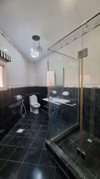 For rent: half a house in Sanad, including electricity and air conditioners. It consists of three rooms, a hall, a kitchen, and three bathrooms. Price is only 350.