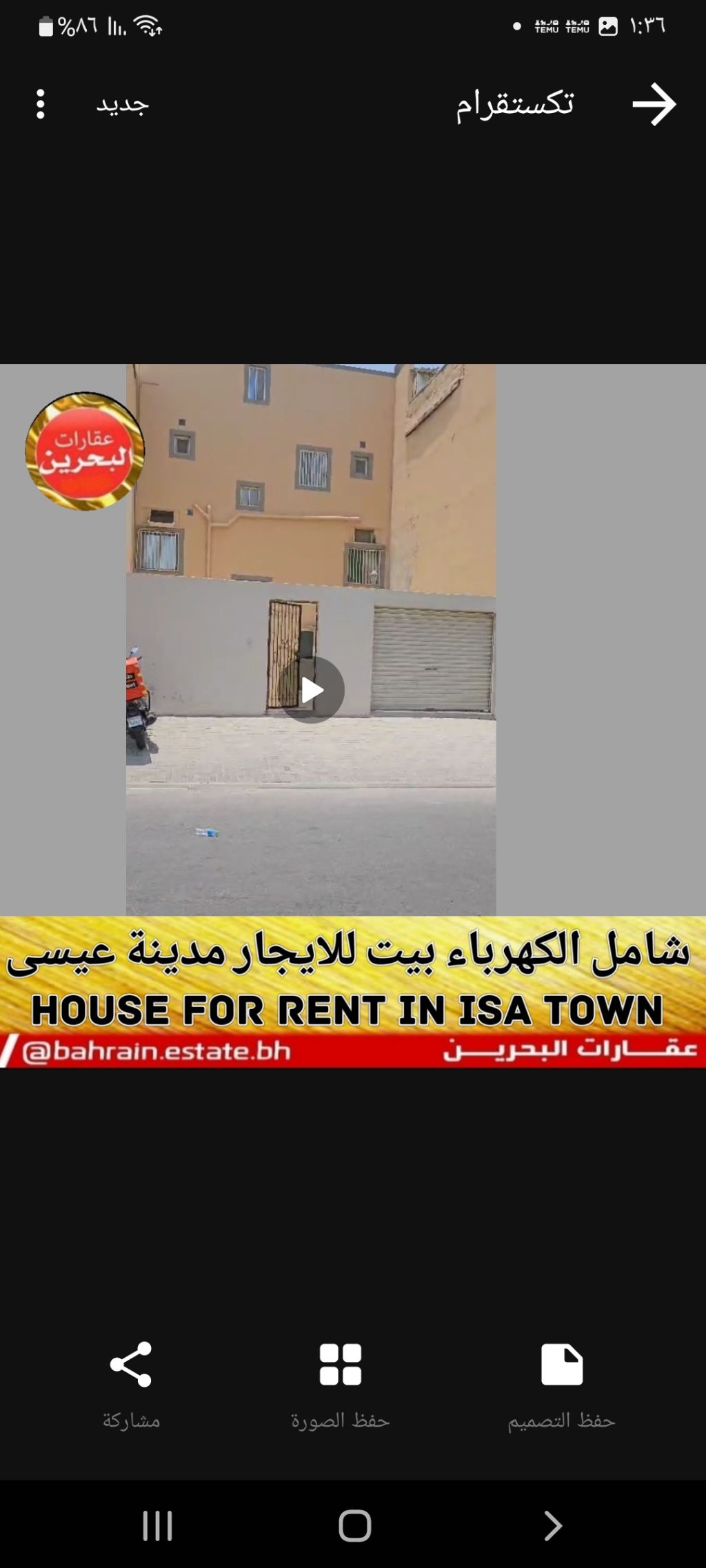 A house for rent in Isa Town consisting of 9 rooms, 9 bathrooms, a majlis, a hall, and car parking in front of the house. The price is 450 including electricity. Contact number available.
