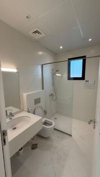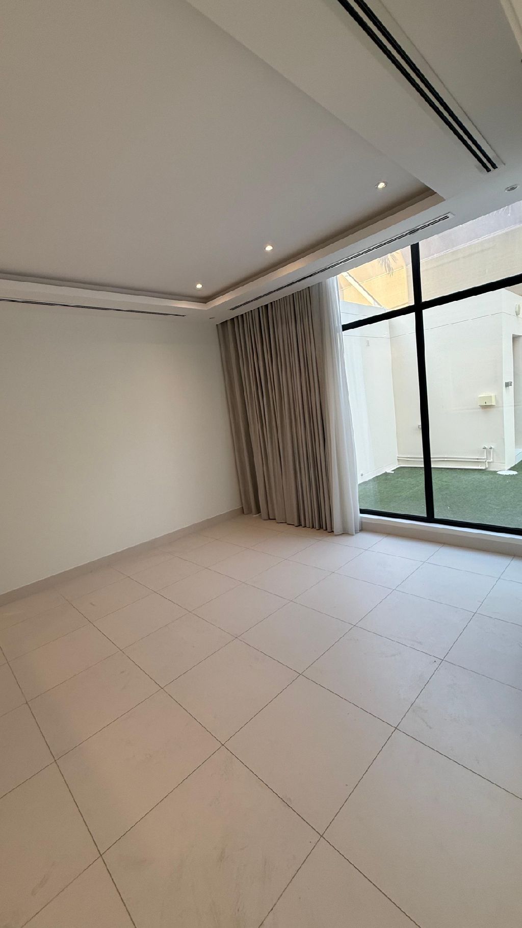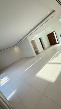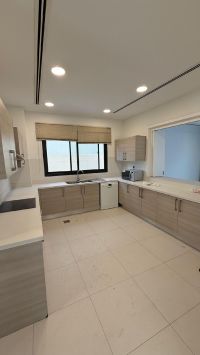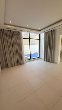 For rent: A luxurious and elegant modern villa in Northern Riffa, consisting of five master bedrooms, a large hall, a living room, a dining room, a swimming pool, a maid's room, a laundry room, a driver's room, central A/C, a front garden, and parking for two cars. Price: 1100 dinars. Contact for more information.