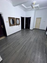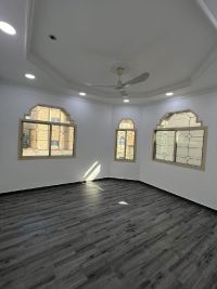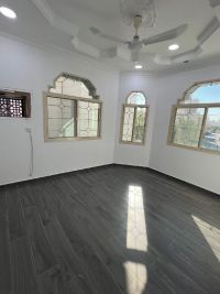 A spacious floor for rent, including electricity, in Al Deir. It consists of 4 bedrooms, 3 bathrooms, a living room, an internal garage, and 2 kitchens. The price is 350 dinars, including electricity. Phone.