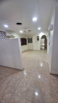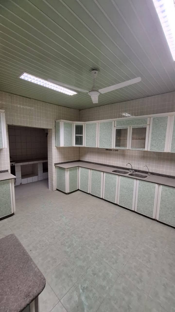 For rent: a clean house in Isa Town, close to all services. Suitable for company employees or workers. The house can accommodate 40 to 50 people. It consists of 11 spacious rooms, mostly master bedrooms, 9 bathrooms, 3 kitchens, 2 halls, and a garage. Includes electricity, water, and municipality fees. Price is 1200 dinars, negotiable. For contact.