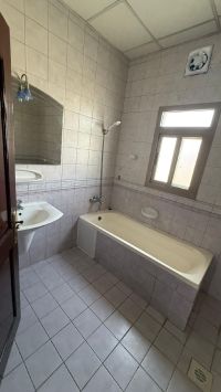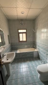 For rent: a clean villa in Northern Riffa, two floors, excellent location, fully air-conditioned. It consists of 5 bedrooms, a very spacious living room, an open kitchen connected to the living room, an external kitchen, 3 bathrooms, a maid's room with a private bathroom, a car garage, a garden, and a shared swimming pool. Price: 550 dinars, not inclusive, and negotiable. Contact.