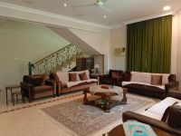 For rent: an elegant villa in a very prime location. The location is suitable for living. The villa is fully furnished or unfurnished. It consists of two floors and includes 4 bedrooms, 3 large living rooms, 5 bathrooms, a large equipped kitchen with a dining area, a maid's room with a bathroom, a garage for two cars with 3 outdoor parking spaces, and a private garden. The price is 650 dinars, not inclusive.