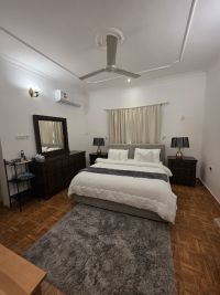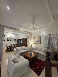 A luxurious furnished villa in Al Hidd consisting of three rooms, a hall, a kitchen, three bathrooms, a maid's room, and a swimming pool. The price is 600 dinars.