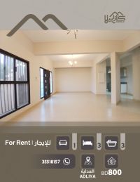 A luxurious villa for rent in the Adliya area. It consists of a ground floor with a spacious family hall, kitchen, and bathroom. The first floor has 3 bedrooms, 2 bathrooms, and a hall. It includes a front yard and a private car parking space. The price is 800 dinars, negotiable. For inquiries.