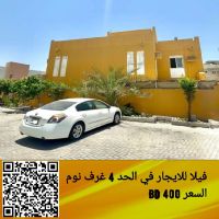 A house for rent in Al Hidd, consisting of 4 bedrooms, 3 bathrooms, 1 living room, 1 kitchen, and parking. The price is 400 dinars, excluding electricity. For contact.