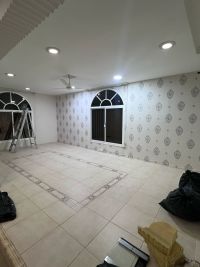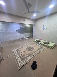 For rent: a house in Al-Hajiyat, Riffa. It contains two living rooms and a bathroom, two master bedrooms, a bedroom, a bathroom, a sitting area, and a kitchen. There are two apartments, each containing a living room, a bathroom, a room, and a kitchen. The master bedroom is one meter for electricity and water. There are five shaded car parking spaces. Suitable for more than one family. Rent is 500 dinars without electricity.