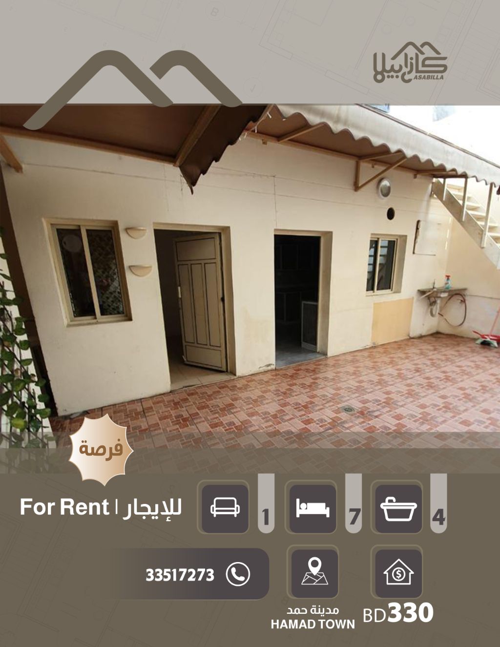 For rent: A house in Hamad City - Roundabout 5. The house is completely renovated, located on an open main street and on a corner. House details: Separate majlis with a private bathroom, 6 bedrooms, 2 spacious living rooms together, private courtyard, kitchen open to the living room, 3 bathrooms. There are 2 air conditioners. Facilities and services are close to schools and services. Covered parking for 6 cars. Price: 330 including electricity and water. For contact and inquiries.