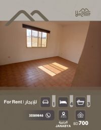 A distinctive villa for rent in Janabiya. Price: 700 dinars, including electricity and water. Specifications: 3 spacious bedrooms - 3 bathrooms - large living room - separate majlis - 8 air conditioners - quiet and prime location in the heart of Janabiya. Ready for immediate occupancy. Suitable for families seeking comfort and privacy. For viewing or inquiries, please contact via.