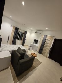 A luxurious furnished villa for rent in Qalali, consisting of 3 bedrooms, a maid's room, 4 bathrooms, a kitchen, a large living room, a courtyard, a private pool, and a parking space, priced at 600 dinars inclusive, with a limit of 50 dinars subsidized.