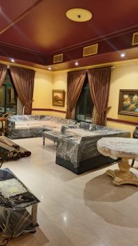 For rent, a very luxurious villa. In Jid Ali, semi-furnished, consisting of 4 rooms, 2 halls, 6 bathrooms, a majlis, a courtyard, and a tablia. Price only 700. For contact.
