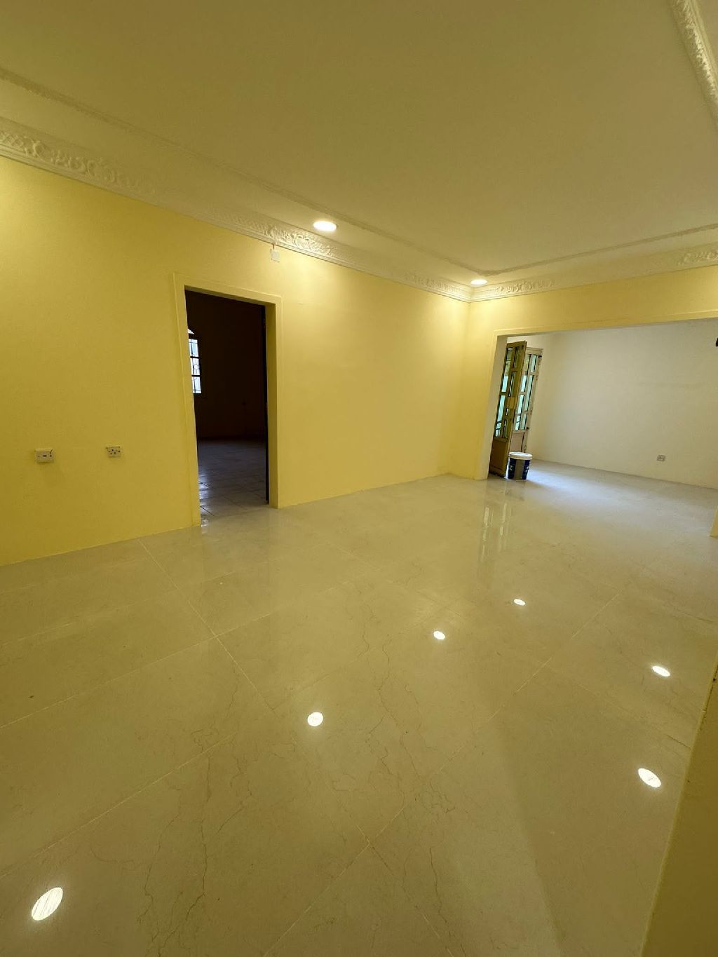 A house for rent in the Al-Hajiyat area, near Al-Muhajirin Park. It consists of four rooms, three bathrooms, two living rooms, and a courtyard. The monthly rent is 400 dinars without electricity and water. For contact, please call the number.