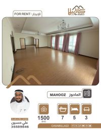 For rent: A luxurious villa in Al Mahouz (Bughazal) with a private pool, 5 master bedrooms, a private pool, and a covered garage. Enjoy an upscale lifestyle that combines luxury, comfort, and complete privacy in this distinctive villa, carefully designed to suit families seeking upscale housing in a quiet and distinguished location. The villa includes 5 spacious bedrooms, all master suites with private bathrooms (en-suite) to provide maximum comfort and privacy for all family members and guests. Separate private pool.