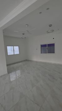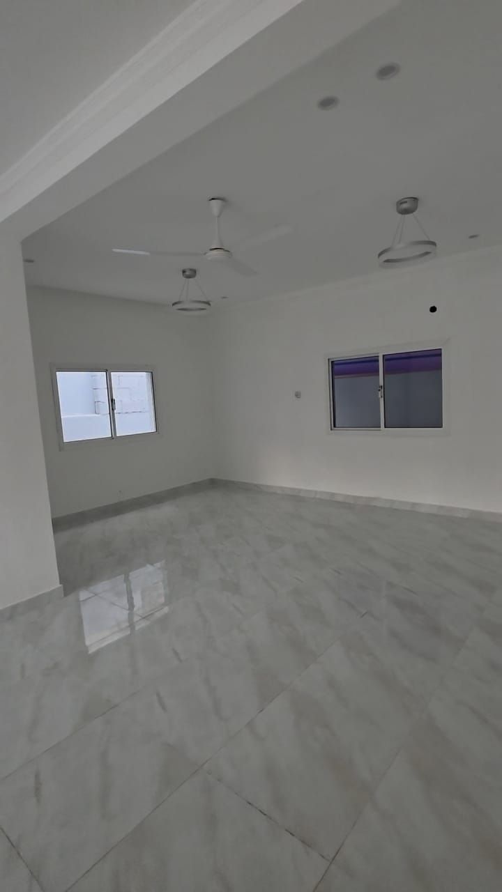 A house for rent in Muharraq consisting of 4 rooms, 2 halls, 4 bathrooms, and a car garage for 450 dinars.
