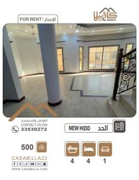 For rent, a villa in Al-Hadd suitable for families and close to all services. Villa specifications: four bedrooms, four bathrooms, a large living room, a swimming pool, parking. Electricity with a 50 dinar limit. Semi-furnished. Rental price: 500 Bahraini dinars. For contact and inquiries.
