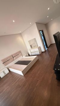 For rent, a villa in Sar consisting of four bedrooms, six bathrooms, a spacious living room, a wide balcony, an open internal kitchen, an external kitchen with a storage room, a maid's room, a wide roof, parking for two cars, semi-furnished, including electricity. The location is characterized by tranquility and proximity to Sar Mall and Family Mall. Price: 700 Bahraini dinars, negotiable. Contact number.