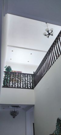 A villa for rent in the Qalali area consists of two floors. The ground floor includes 2 master bedrooms, 1 dining room, 1 external majlis, 1 internal majlis, 1 large hall, 1 large kitchen, 1 store or laundry room, 3 bathrooms (2 of which are in the rooms), an external sink, a small yard, and covered parking. The second floor has a master bedroom with a bathroom. The required rent is 700 dinars, excluding electricity. The villa is equipped with air conditioning, curtains, simple furnishings, complete kitchen appliances, screens, and full electrical accessories. For contact.