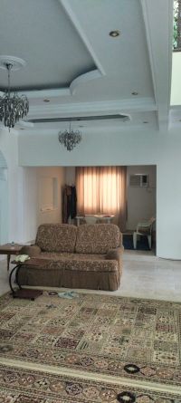 For rent: A residential or commercial villa in the Qalali area, suitable for living or as a kindergarten. It consists of two floors. The ground floor includes: 2 master bedrooms, 1 dining room, 1 external majlis, 1 internal majlis, 1 large hall, 1 large kitchen, 1 storage or laundry room, 3 bathrooms (2 of which are in the bedrooms), an external sink, a small yard, and covered outdoor parking. The second floor includes: a master bedroom with a bathroom. The villa comes with some furniture, air conditioners, curtains, and kitchen appliances. Rent required: 700 dinars, excluding electricity.