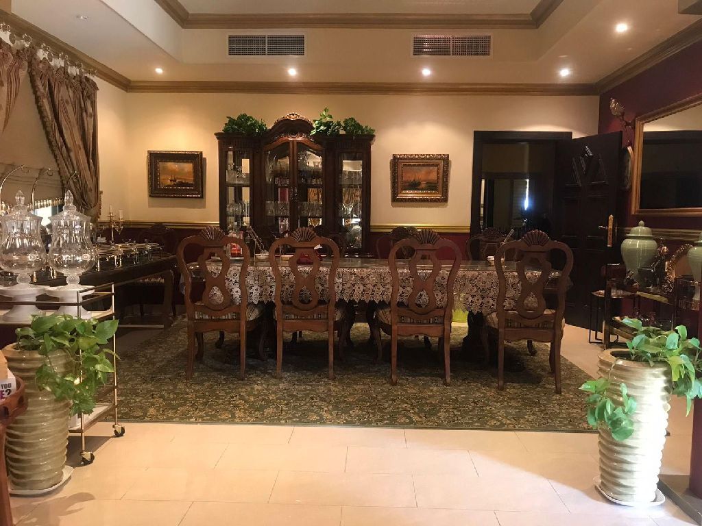 Luxury villa for rent, semi-furnished, two floors with garden and garage, outdoor parking in Jad Ali area. Ground floor: two council halls with a hand wash basin, dining hall, and bathroom. Two kitchens: internal and external. First floor: three large master bedrooms and a hall. Price: 650 dinars only. Contact.