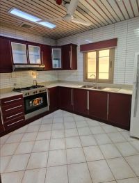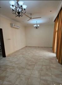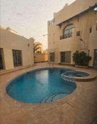 A villa for rent in Al-Hadd Al-Jadeed, semi-furnished, including electricity for 50 dinars. It consists of 3 bedrooms, 4 bathrooms, a maid's room with its own bathroom, a living room, a shared swimming pool, and a shared gym. The price is 500 dinars final, including electricity, or 450 dinars not including electricity. Phone.