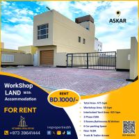 ورشة أرض مع سكن للإيجار في عسكر (475 متر مربع) 1000 دينار بحريني / يقع هذا المبنى الصناعي في منطقة عسكر بالقرب من ألبا. مساحة الأرض 475 متر مربع. مساحة الورشة 50 متر مربع مع كهرباء ثلاثية الطور. ساحة مفتوحة منفصلة، وثلاث غرف مناسبة للمكاتب أو سكن العمال مع ثلاثة حمامات ومطبخ. أرضية الفناء متشابكة. سهولة وصول الشاحنات والمقطورات. 6 مواقف للسيارات. الإيجار الشهري 1000 دينار بحريني