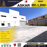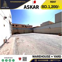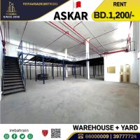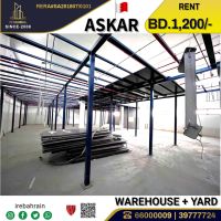 Warehouse for rent with mezzanines and yard in Askar - near ALBA for only BD1200 per month. Location Askar - near ALBA company, a strategic Industrial Area. Total area 833 SQM. Warehouse 413 SQM. Open yard 420 SQM. Includes mezzanines, offices, and bathrooms. Three - phase electricity. easy access for trucks and trailers. Possibility to use any commercial registration (CR) address. Ideal for storage