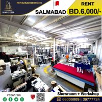 A showroom with a workshop (3000 square meters) for rent in Salmabad, at a price of 6000 Bahraini dinars. This commercial hall is located in the Salmabad area, in a prime location. There are two side streets, front and rear. A spacious and attractive showroom on the first floor, and a private office on the ground floor. The rear floor is a workshop, with a total area of 1900 square meters, and another office and workshop on the first floor with an area of 1100 square meters. Equipped with a three-phase electrical network and an entrance.