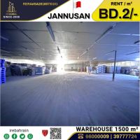 Warehouse/Storage for rent in Janusan near Al Budai - 2 Bahraini Dinars per square meter. This standard warehouse with an area of 1500 square meters in Janusan, near Al Budai, is available for rent at a price of 3000 Bahraini Dinars per month (2 Bahraini Dinars per square meter) with flexible short or long-term rental options, and it is ideal for storage purposes. The warehouse includes electricity and water services, and allows easy access for trucks and trailers, but please note that it cannot be used.