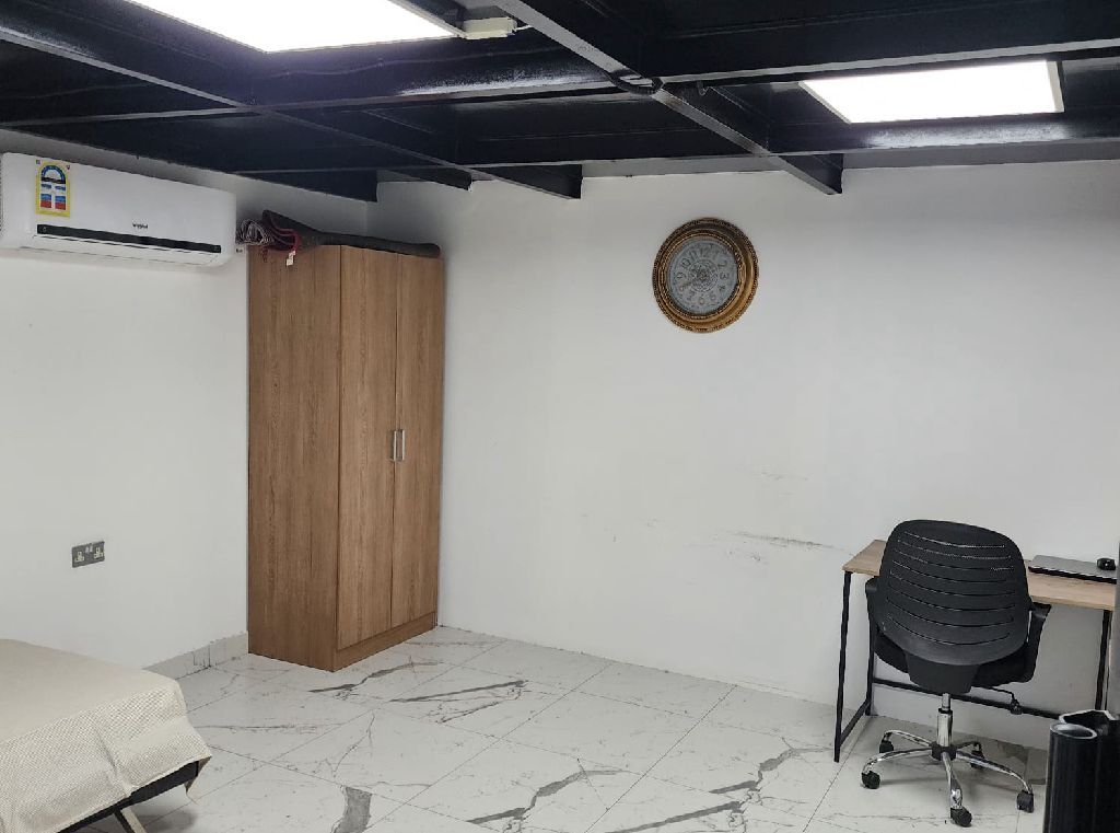 For rent: a warehouse in Askar (Khalifa City) with worker accommodation. Land area 460 square meters, consisting of a 350 square meter warehouse, a commercial office, 4 worker rooms with bathrooms and a kitchen. The warehouse with the office, 4 worker rooms, large kitchen, and bathrooms. Full rent: 1300 dinars. Contact.