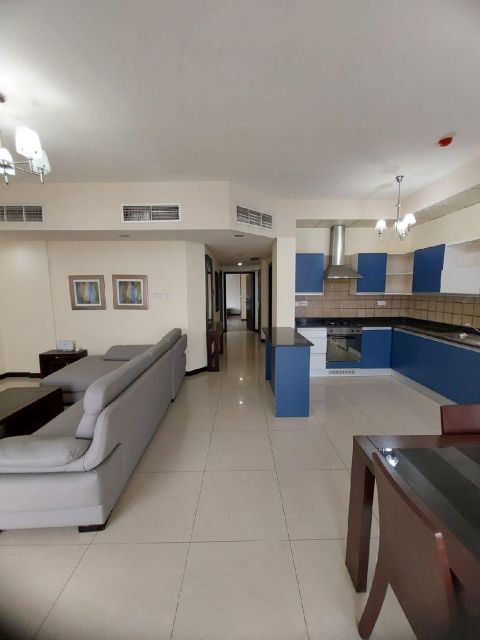 شقة للإيجار في الماحوز قرب العدلية، مفروشة بالكامل، غرفتين نوم، حمامين، ومطبخ، مع بركة سباحة، صالة حديد، وموقف سيارات، بسعر 330 دينار بحريني شامل الكهرباء لمدة 30 يومًا.