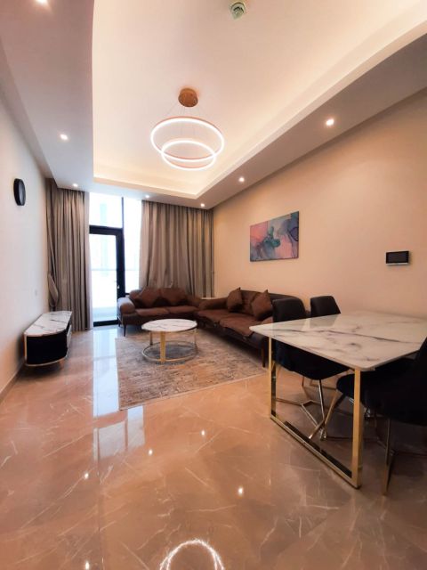 للإيجار شقة فاخرة في الجفير، مفروشة بالكامل، تتكون من غرفة نوم واحدة، حمامين، صالة، مطبخ، وبلكونه. خدمات المبنى تشمل استقبال ومنطقة انتظار. الإيجار 350 دينار، يشمل الكهرباء والماء، مع رسوم بلدية 20 دينار (عقد سنوي)