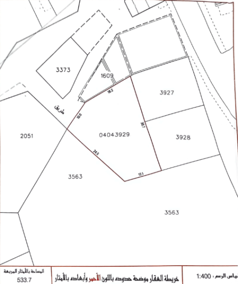 للبيع أرض في المصلى المساحة 533.7 متر - التصنيف سكني RB - سعر القدم 23 - السعر الإجمالي 132.2 ألف دينار مرجع LS1345