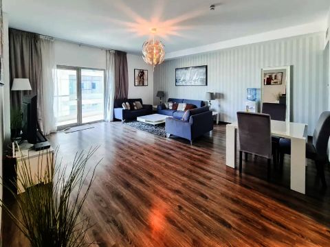 Harbor real estate for sale A luxurious apartment in the Juffair area with freehold ownership and a sea view. It includes two bedrooms, two bathrooms, a living room, a kitchen, a balcony, a parking space, a swimming pool and gym, a children'playground, a Jacuzzi and sauna, barbecue area, 24 - hour security, a tennis court, and a squash court. The apartment area is 112 SQM. The total price