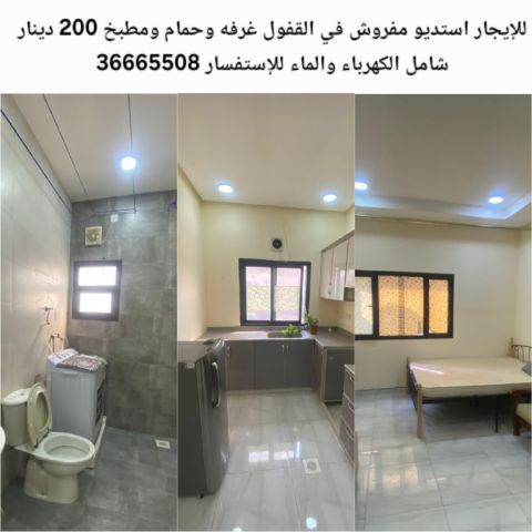 للإيجار، استوديو مفروش في القفول مكون من غرفة وحمام ومطبخ بسعر 200 دينار، يشمل الكهرباء والماء