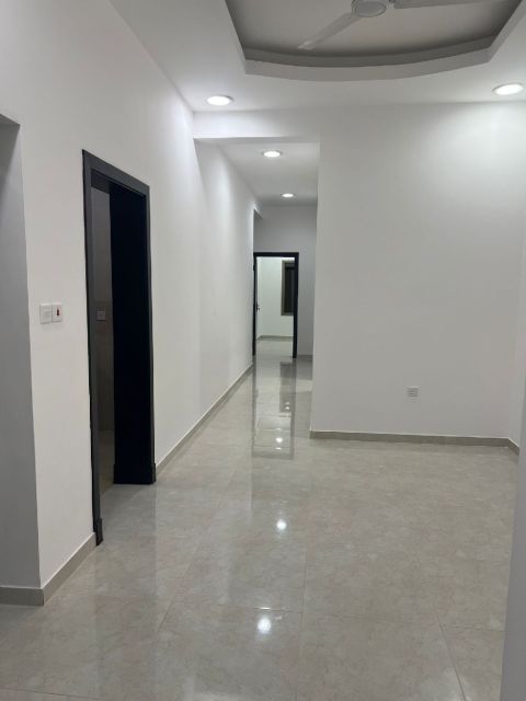 For sale. An owned apartment in the Riffa (Al-Hajiyat) area, first floor, 3 bedrooms (2 master), living room, kitchen, living area, 4 bathrooms, laundry room, maid's room with balcony, private parking for the apartment. Apartment area is 157 square meters. Price is 50,000 dinars (negotiable). Agency: Sar Real Estate, Abdullah Al-Jana, Bu Ammar district.