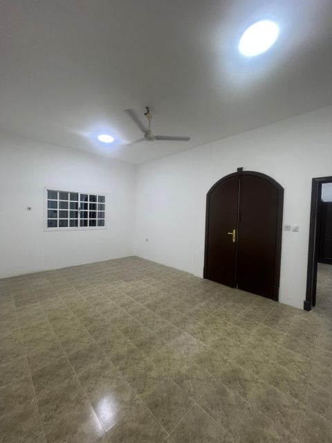 For rent, a full-floor apartment in a house in Riffa Al Hajiyat, consisting of 4 rooms, 3 bathrooms, a living room, and a kitchen. The apartment is separate with a private entrance. There is parking available. The price is 450 Bahraini dinars, including electricity, and negotiable.
