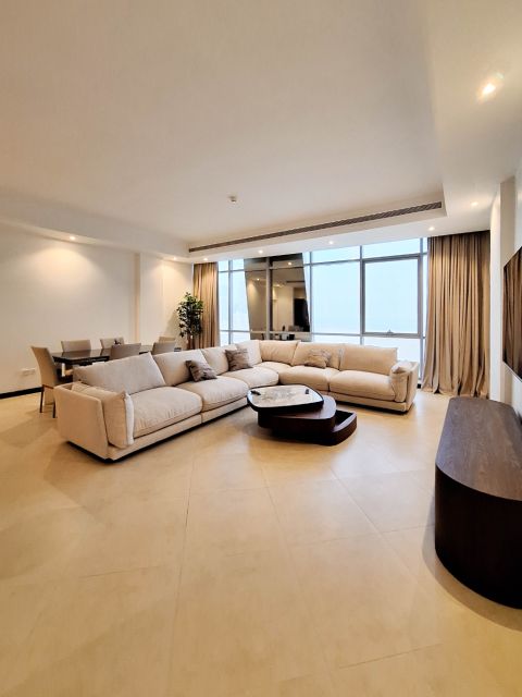 شقة مفروشة للإيجار في الجفير، تقع في مبنى فندقي بموقع مميز وقريبة من هايبر ماركت اللولو وجميع الخدمات. المساحة 181 متر مربع في الطابق السادس، وتحتوي على 3 غرف نوم و3 حمامات ومطبخ جاهز وصالة واسعة. الخدمات تشمل حمام سباحة وصالة رياضية وموقف سيارات. السعر 480 دينار شامل الكهرباء