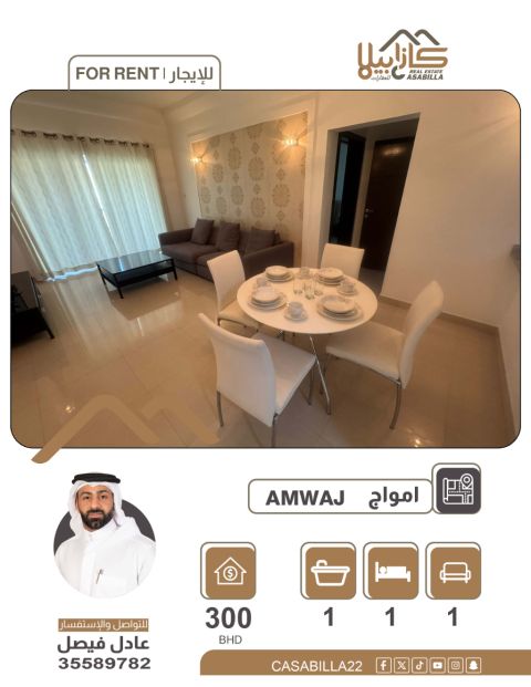 سكن هادئ ونمط حياة راق في جزر أمواج. استمتع بالسكينة والرفاهية في واحدة من أرقى الوجهات البحرية في البحرين. شقة عصرية تجمع بين التصميم المريح والإطلالة المنعشة، مثالية لمن يبحث عن الاستجمام والقرب من البحر. تتكون من غرفة نوم واحدة، صالة، مطبخ، حمام، وبلكونة. الإيجار الشهري 300 دينار. للتواصل والاستفسار.