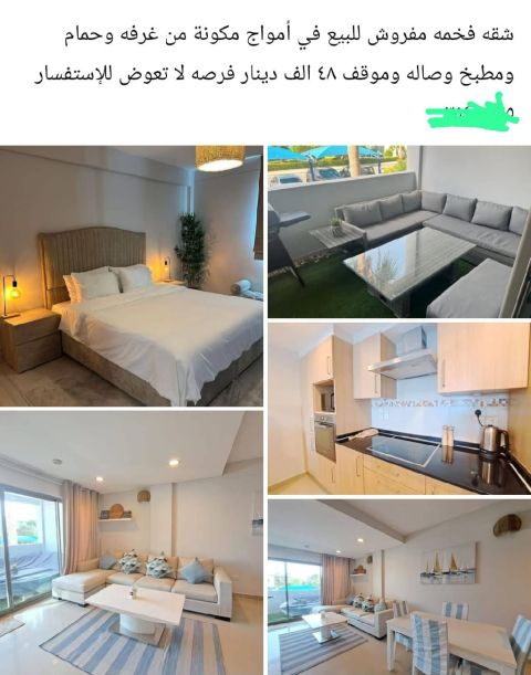 شقة فاخرة مفروشة للبيع في أمواج، تتكون من غرفة نوم وحمام ومطبخ وصالة وباركنغ. فرصة لا تعوض بسعر 48,000 فقط. للتواصل عبر واتساب: 36118518.