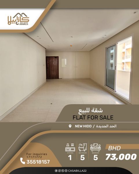 For sale: A new apartment with a two-unit system, Arabic style, one floor and a garden unit. Details of the first apartment: 1 large living room with a bathroom, 1 spacious family hall with a balcony, 1 large kitchen with a balcony, 3 bedrooms, 4 bathrooms, 3 balconies. Details of the small apartment: 1 bedroom, 1 hall, 1 kitchen, 1 bathroom, 1 balcony. Second, facilities and services: Excellent location close to all services. The building contains 6 apartments, with only one apartment per floor, and 2 parking spaces. Price: 76,000 BHD.