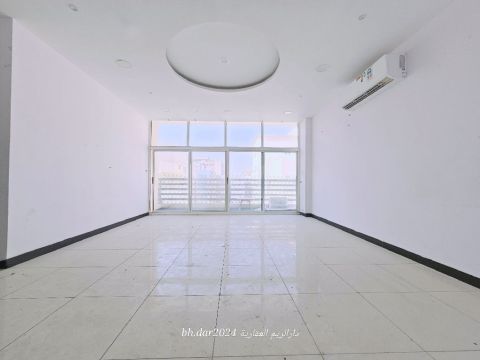 Hidd City/ A luxurious and spacious apartment for rent with air conditioning, consisting of 3 bedrooms, 3 bathrooms, a very large living room, a kitchen, two balconies, and a parking space. The rental price is 350 dinars without electricity. For contact/ call