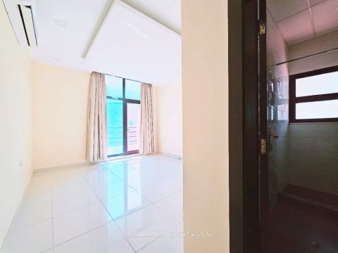 In Hidd - city, a luxurious apartment for rent consisting of 3 master bedrooms, a spacious living room, 4 bathrooms, a kitchen, a balcony, and parking spaces. The price is 180 dinars without electricity. For contact, please call