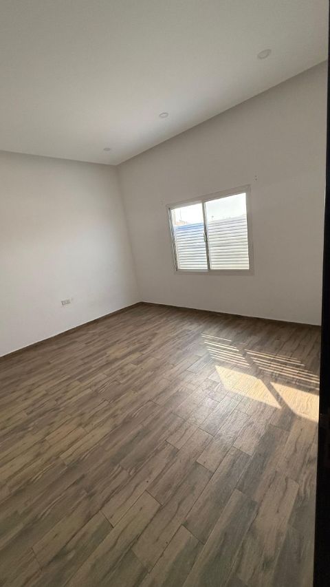 For rent: A very spacious apartment in Riffa, Abu Quwara, near Khalifa Park and Al-Ma'rifa School, with all services. It consists of three bedrooms, two bathrooms, a kitchen, two balconies, and an elevator. The price is only 250 dinars, excluding electricity. Contact us.