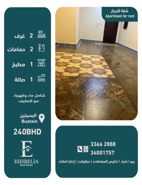 For rent, a fully furnished apartment in Al-Hadd, villa-style, on the ground floor area, consisting of four master bedrooms (with bathrooms), a maid's room with a bathroom, a kitchen, and a large storage area. There is a multi-use outdoor space, a living room, and a reception area, with a private swimming pool, jacuzzi, and heating system. Rent is 450 dinars. For contact.