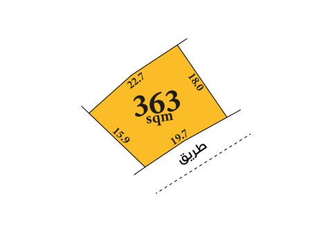 For sale: a residential land in Askar, near Askar Al-Gharbi Mosque. Land classification: RA. Land area: 363.6 square meters. Price per square foot: 22.74 Bahraini dinars. Total price: 89,000 Bahraini dinars. Reference: MPM3341.