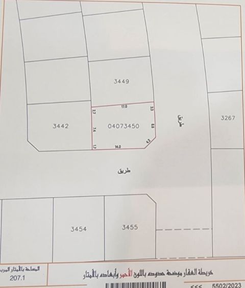 Eiffel Towers real estate Company offers for sale a land plot in Abu Quwa, with an area of 207.1 SQM, classified as residential attached (ARHA) price per square foot 35.2BD, total price BD78500. For contact Mahmoud Al Sadiq, eiffeltowers. re, licensed broker by the real estate Regulatory Authority, license number B202403/ 1257