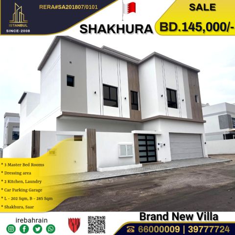 فيلا فاخرة جديدة للبيع في الشاخورة بالقرب من سار 145000 دينار بحريني. تصميم حديث، تخطيط واسع موقع مميز. اكتشف هذه الفيلا الجديدة تماما في منطقة الشاخورة الهادئة والم سالمة، بالقرب من سار. تم تصميم هذه الفيلا للحياة العصرية، وتتميز بتصميم واسع وتشطيبات راقية وحديقة خاصة - مثالية للعائلات التي تبحث عن الراحة والرفاهية. مميزات العقار تشمل موقعا متميزا - بالقرب من سار وطريق البديع السريع ومدرسة سأنت