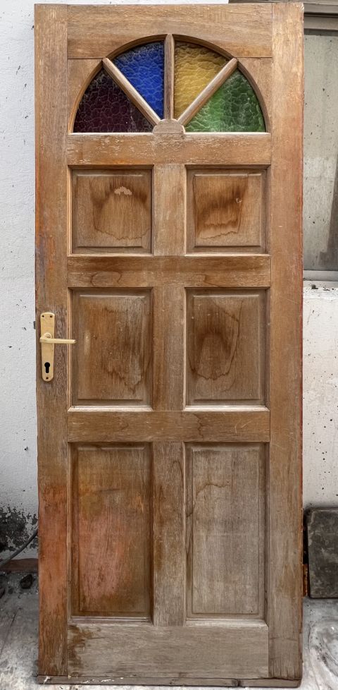 للبيع: باب خشبي جميل مزين بزجاج ملون مع الإطار، بسعر 36 دينار فقط لأسرع متصل.