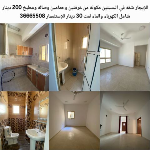 للإيجار: شقة في البسيتين مكونة من غرفتين وحمامين وصالة ومطبخ بسعر 200 دينار، تشمل الكهرباء والماء. الإيجار 30 دينار. للاستفسار.