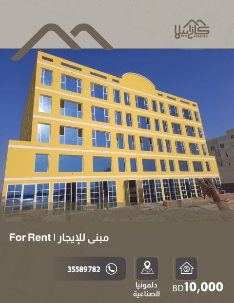 مبنى جديد في مدينة الاستثمار الجديدة (دلمونيا الصناعية). المساحة: 900 متر مربع. يتكون من 4 طوابق: 1 - الطابق الأرضي يتكون من 16 محل مع ميزانين + مكتب لكل محل (8 محلات على الواجهة البحرية، 8 محلات على جانب المواقف). 2 - الطابق الأول يتكون من 6 شقق (4 شقق من 3 غرف + حمامين + صالة ومطبخ، شقتان من غرفتين + حمامين + صالة + مطبخ). 3 - الطابق الثاني يتكون من 6 شقق (4 شقق من 3 غرف + حمامين + صالة ومطبخ).